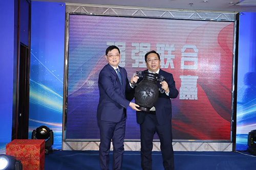 而后,特邀嘉宾北京大成(石家庄)律师事务所主任、董事局主席张海水发表了讲话,为合明送来了祝福,并赠送了礼物,他祝愿合明把握新契机,拥抱新未来,坚定向前,乘风破浪,披荆斩棘,收获丰硕的果实。
